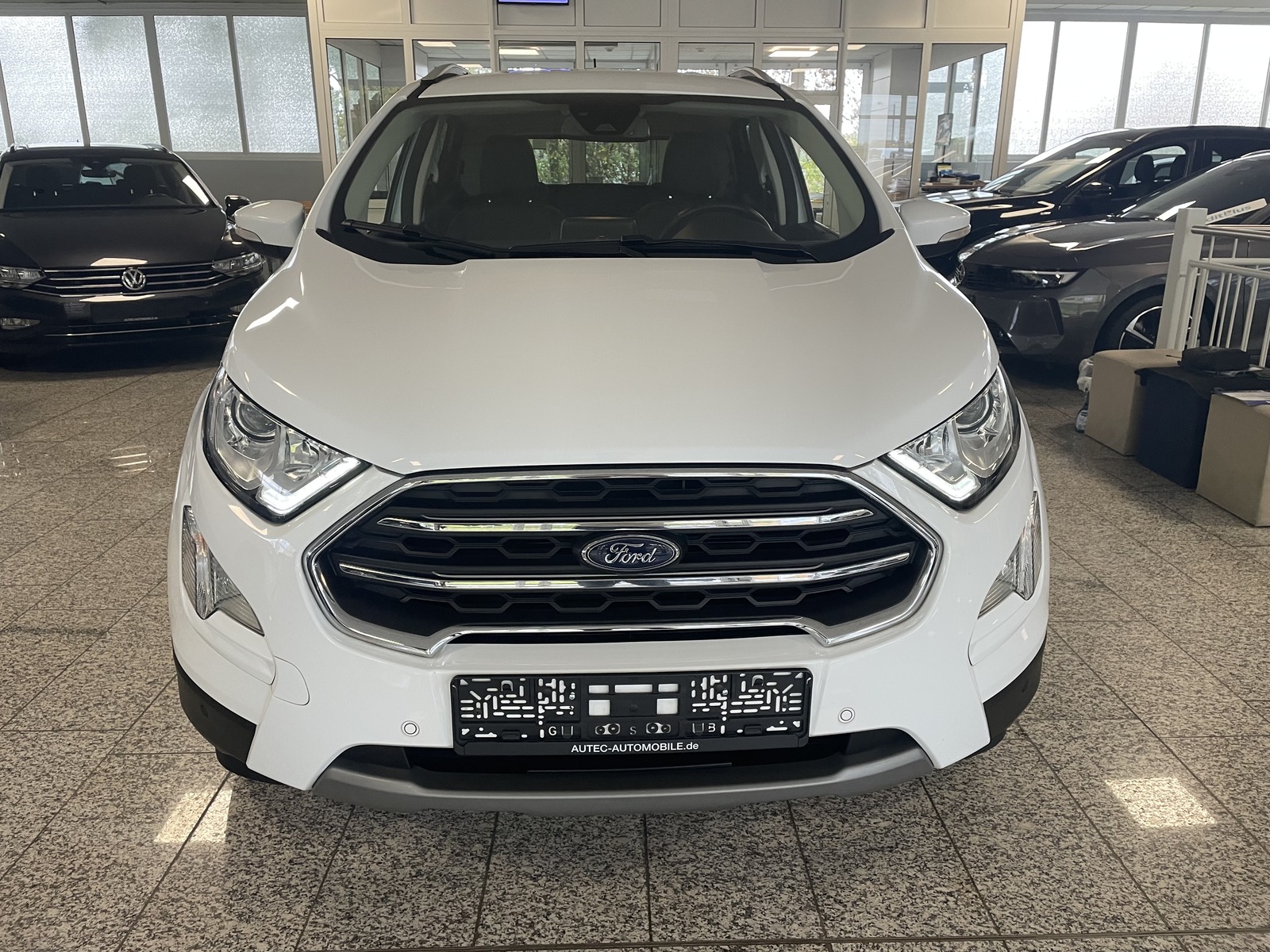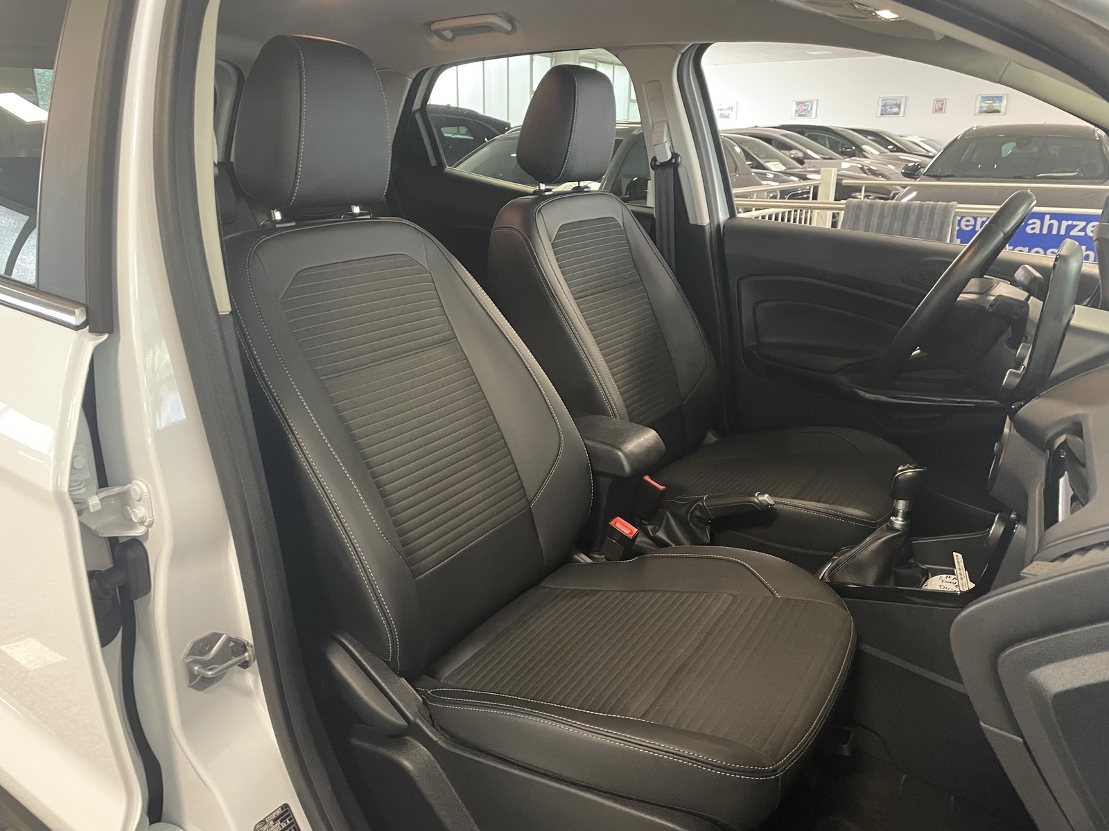 Fahrassistenz-System: Berganfahr-Assistent (Hill-Holder), Fahrassistenz-System: Notbrems-Assistent, Wankneigungskontrolle (Roll Stability Control, RSC), Elektr. Bremskraftverteilung (EBD), Antischlupfregelung (ASR), Reifendruck-Kontrollsystem, Parkpilotsystem hinten, Scheinwerfer-Assistent mit Tag-/Nachtsensor, Sitzbezug / Polsterung: Teilleder, Klimaautomatik, Sonderlackierung Frost-Weiß, Verglasung hinten abgedunkelt (Privacy Glass), LM-Felgen, Lendenwirbelstütze Sitz vorn links, Außenspiegel elektr. verstell- und heizbar, Außenspiegel Wagenfarbe, Fensterheber elektrisch vorn + hinten mit Komfortschließung, Dachreling silber, Motor 1,0 Ltr. - 92 kW EcoBoost KAT, Getriebe 6-Gang - Typ: 6MX65, Start/Stop-Anlage, Rücksitzlehne geteilt/klappbar (60:40), Isofix-Aufnahmen für Kindersitz, Karosserie: 5-türig, Radstand 2519 mm, Schadstoffarm nach Abgasnorm Euro 6d, Innenraumfilter: Staub- und Pollenfilter, Zusatzheizung, Schwellerverbreiterung, Handbremshebelgriff Leder, Schalt-/Wählhebelgriff Leder, Schaltpunktanzeige, Bordcomputer, Farbdisplay für Bordcomputer, Stau-/Ablagefach unter Sitz vorn rechts, Fußmatten Teppich, 3-Punkt-Sicherheitsgurt hinten, Getränkehalter vorn, Heckscheibe heizbar, Brillenfach in Dachhimmel / Dachkonsole integriert, Intelligent Protection System (IPS), Blinkleuchte in Außenspiegel integriert, Gepäckraumabdeckung / Rollo, Ambiente-Beleuchtung vorn (LED),
